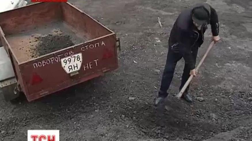 Предприниматель из Горловки Донецкой области решил воспользоваться известным советом премьер-министра Украины. Взял старый асфальт, который при ремонте снимают коммунальщики, и начал засыпать им ямы на дороге в центре города