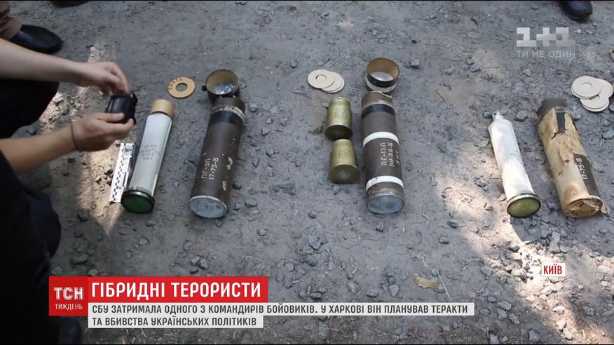 СБУ задержала одного из командиров боевиков, который в Харькове планировал теракты и убийства проукраинских политиков. А в столичном Гидропарке был обнаружен тайник с оружием, патронами, взрывчаткой и детонаторами. Начато следствие. Нужно сразу звонить в полицию, как только в людном месте замечены подозрительные предметы или лица.