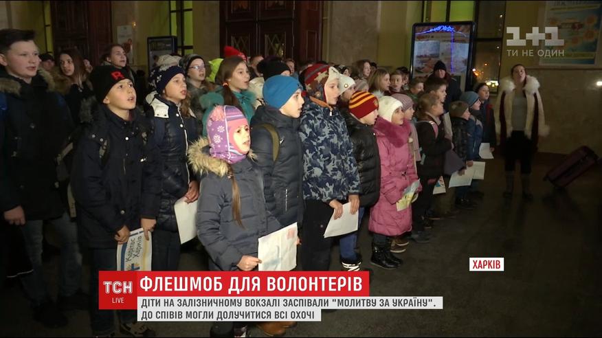 На Харьковском железнодорожном вокзале устроили флешмоб в честь Дня волонтеров