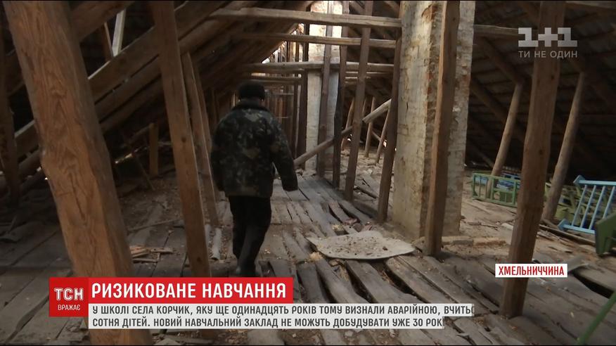 Сотня детей вынуждена ходить в школу, где трещат стены и валится крыша. В селе Корчик дети учатся в полуразрушенной школе. В помещениях холодно, сыро и темно. Рядом, правда, возводят новую школу, вот только это продолжается уже 30 лет.