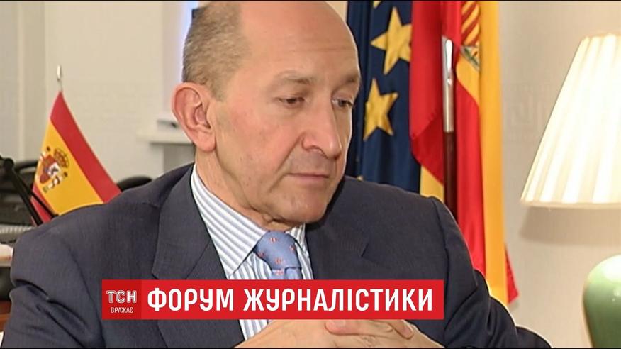 Форум откроется завтра. Приедут представители двух самых влиятельных испанских газет. Их аудитория - это более четырехсот миллионов читателей как в Испании, так и Латинской Америке. Об этом сообщил в интервью ТСН посол Испании в Украине. Это возможность для иностранных журналистов увидеть ситуацию в Украине собственными глазами.