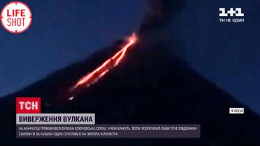 Потоки лавы и возможный обвал краев кратера. На Камчатке проснулся вулкан Ключевская Сопка. Ученые говорят, поток раскаленной массы течет южным склоном и за несколько часов спустился на полтора километра. Это уже четвертое извержение вулкана за этот год.