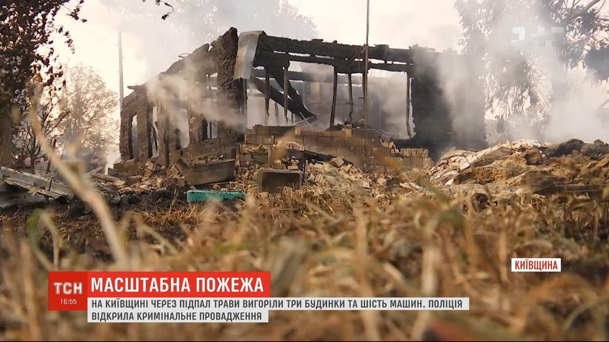 На Киевщине из-за поджога травы сгорели 2 дома и 6 машин
