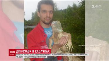 Необычный вызов получила киевская команда спасения животных. Женщина пожаловалась, что у нее возле дома уже несколько недель подряд доисторическое животное топчет и ест кабачки. Специалисты приехали на вызов и увидели огромную игуану. Метровая ящерица была истощена и обезвожена, судя по всему, она уже давно сбежала от своих владельцев. Спасатели доставили любительницу кабачков в ветеринарную клинику Киевского зоопарка.