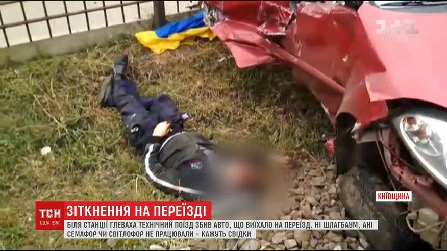 На Киевщине ремонтный локомотив столкнулся с машиной, которая переезжала пути