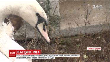 Со сломанным крылом, лебедь не может улететь на юг, и по словам свидетелей - плачет, когда друзья, пролетая над ним, зовут на юг. Помочь лебедю его опекуны попросили ТСН. Люди верят, что отзовется кто-то, кто имеет опыт физической и психологической реабилитации этих птиц.
