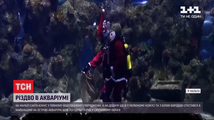 Рождество в аквариуме. На Мальте Санта-Клаус в полном водолазном снаряжении, а в придачу - еще и в красном тулупе и с белой бородой, спустился в самый большой на острове аквариум. И не просто поплавать, а покормить рыб в праздничном образе. Но, как пошутили работники аквариума, вкусненькое получили только те рыбы, которые хорошо вели себя в течение года.