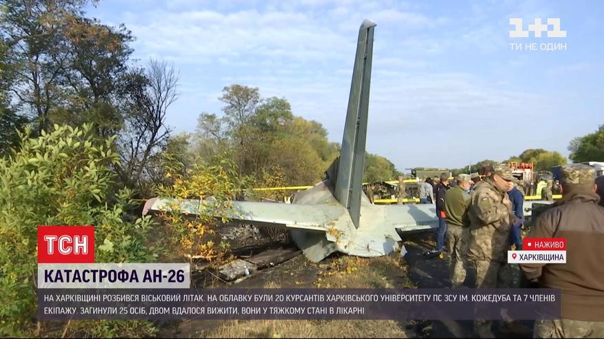 В Харьковской области разбился военный самолет. На борту были 20 курсантов Харьковского университета ВС ВСУ им. Кожедуба и 7 членов экипажа. Погибли 25 человек, двоим удалось выжить, они в тяжелом состоянии в больнице. Поисково-спасательная операция на месте крушения продолжается со вчерашнего вечера. Что там происходит - смотрите в прямом включении.