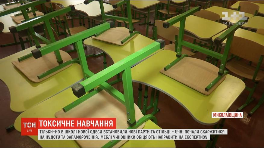 Так утверждают родители. После того, как первоклашкам в класс установили новые парты и стулья, у детей появилась тошнота, головная боль, и даже головокружение. Мебель приобрели путем госзакупках, в рамках программы "Новая школа".