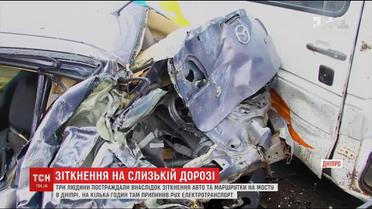 На одном из мостов Днепра столкнулись легковой автомобиль и маршрутка