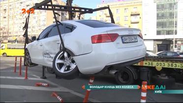 На перекрестке в столице не разминулись две легковушки. Удар оказался настолько мощным, что одна из машин смяло, как консервную банку, задняя часть просто превратилась в металлолом, а колесо вырвало.