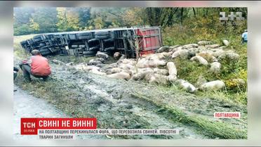 На Полтавщине фура, что везла более сотни свиней, попала в ДТП
