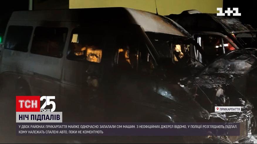 Ночь поджёгов на Прикарпатье. Ночью там загорелись семь автомобилей. Пожары в разных районах вспыхнули почти одновременно. В Долине загорелись 3 легковушки, стоявшие на парковке между жилыми домами. А в Богородчанах и селе Пнев – микроавтобусы. Три из них также были на стоянке, один – на частном дворе.