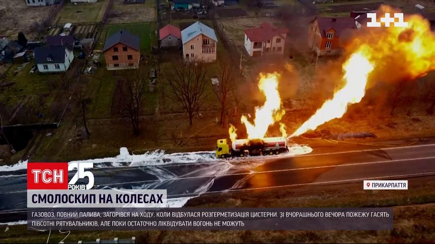 На Прикарпатье спасатели уже сутки тушат цистерну с горючим | Новости Украины