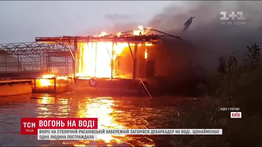 На Русановский набережной сгорел дебаркадер