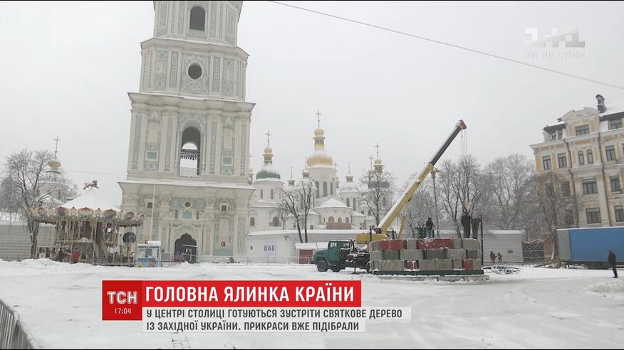 Живое дерево весом около десяти тонн везут в столицу из Прикарпатья и уже завтра в двенадцать утра обещают доставить на площадь. Сегодня для елки устанавливают постамент. Украшения уже готовы - это три тысячи игрушек с авторскими узорами. Половину из них расписали дети. Торжественное открытие елки состоится 19 декабря.