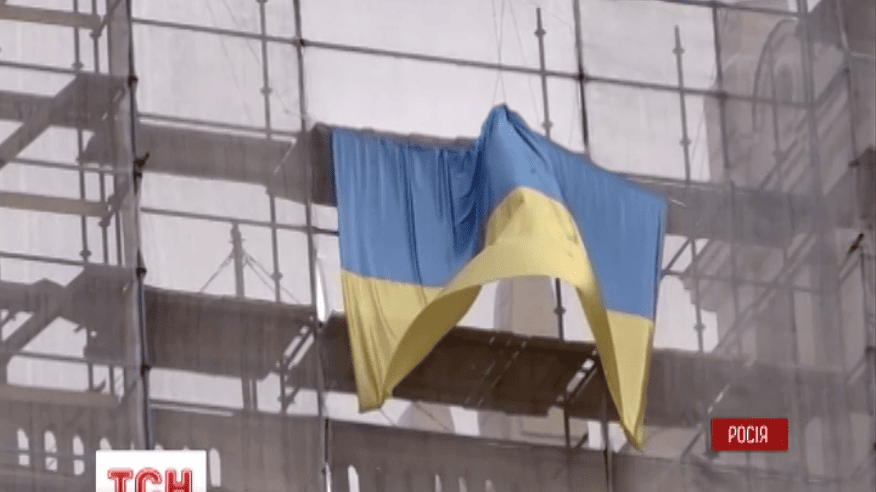На сталинке в центре Москвы реет украинский флаг