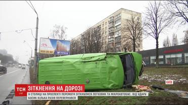 На столичном проспекте Победы столкнулись легковушка и микроавтобус