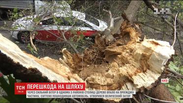 На столичной Татарке гнилое дерево упало на дорогу и повредило легковушку
