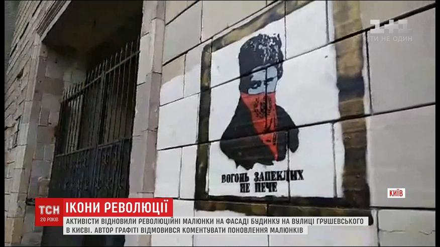 На столичной улице Грушевского восстановили известные патриотические граффити
