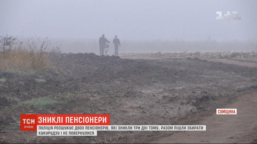 По словам родственников, 61-летний Александр Свериденко и 69-летний Владимир Дегтярь на рассвете на велосипедах отправились на поле собирать кукурузу до сих пор не вернулись. Правоохранители обследовали территорию вокруг поля со служебными собаками, также с помощью квадрокоптера.