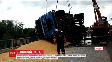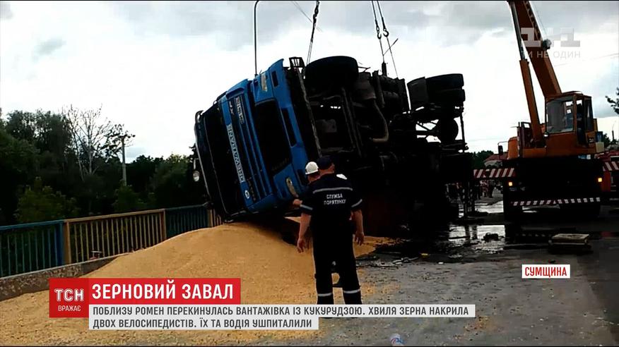 На Сумщине зерно из перевернувшегося грузовика засыпало велосипедистов