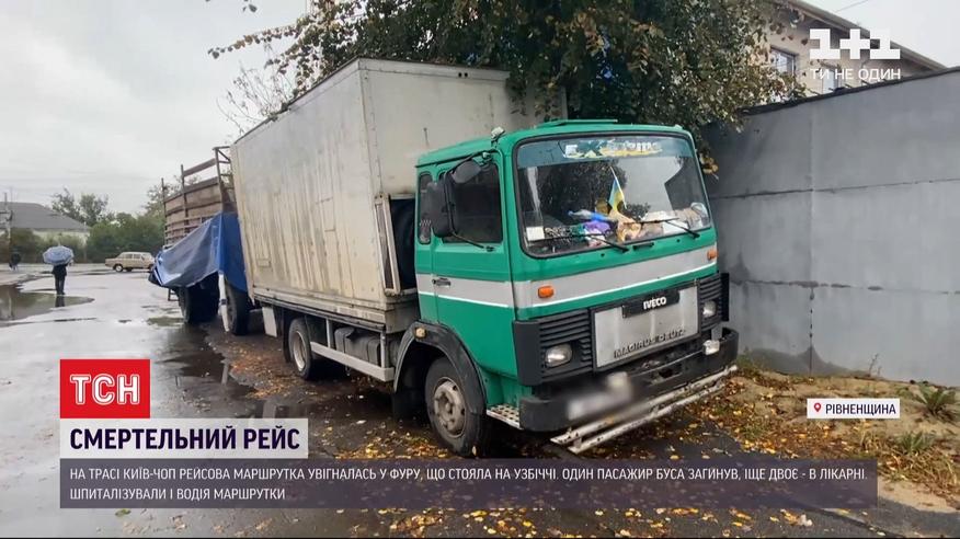 Один человек погиб, еще троих госпитализировали. В Ровенской области на трассе "Киев-Чоп" маршрутка въехала в фуру. Это был рейсовый микроавтобус. До Ровно оставалось 55 километров, как вдруг водитель автобуса на скорости въехал в грузовик, водитель которого остановился протереть стекло от грязи.
