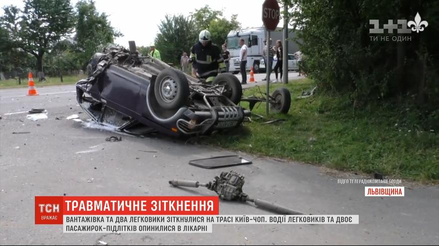 На трассе "Киев-Чоп" столкнулись две легковушки и грузовик