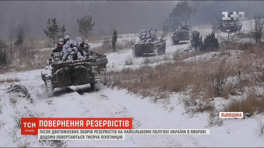 Две недели пехотинцы учились разминировать дороги и стрелять из всех видов боевой техники, которая есть в украинской армии. Учения проходили около тысячи мужчин, созванных на собрание через введение военного положения.