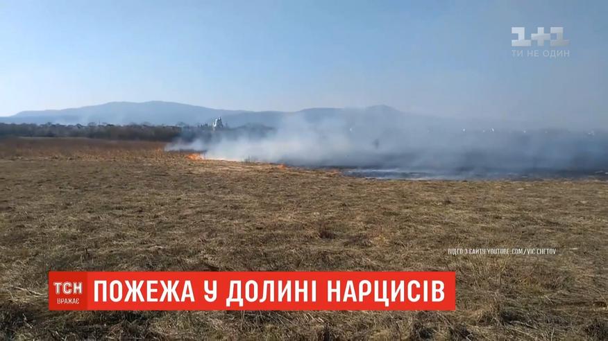 Виновники - поджигатели сухой травы, говорят в Карпатском биосферном заповеднике. Огонь из сельскохозяйственных земель перекинулся на "Долину нарциссов". Выгорели полтора гектара заповедной территории. В заповеднике успокаивают - сами цветы не пострадали, ведь их луковицы глубоко в земле, а ростки еще не пробились.