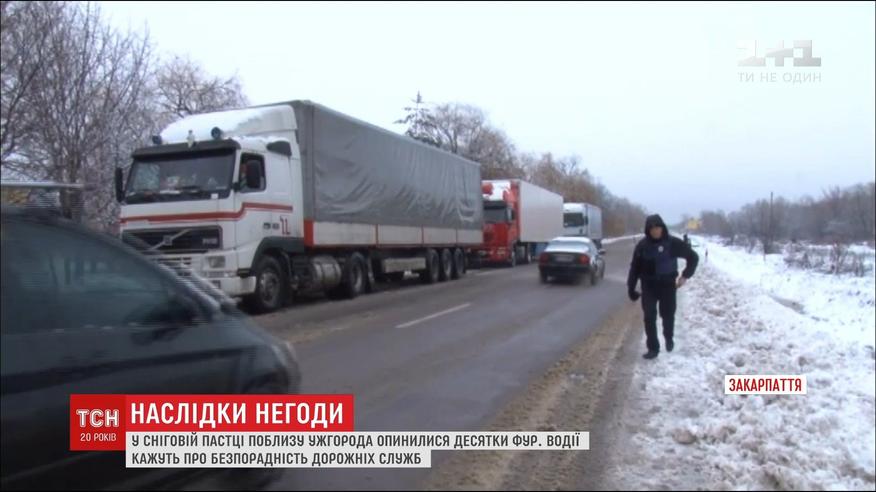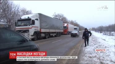 На Закарпатье из-за сильных снегопадов десятки фур оказались в ловушке