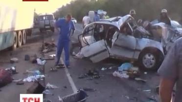 На Запорожье на трассе Харьков-Симферополь легковушка лоб в лоб врезалась в грузовик. По данным ГАИ, в легковушке "Опель" была семья из России. В результате столкновения, автомобиль разбит вдребезги. Три человека в нем, родители и их трехлетний сын, погибли.