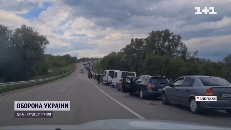 Более тысячи украинских авто, выезжающих с оккупированной территории, россияне заблокировали в Запорожье. В настоящее время колонна стоит перед последним российским блокпостом в поселке Васильевка. Очередь из машин растянулась на несколько километров. Беженцы из Орехова, Энергодара, Бердянска и сел Херсонщины уже третьи сутки сидят в машинах. Почему людей не пропускают – россияне не говорят. У большинства беженцев уже закончились еда и вода. Сегодня военной администрации удалось договориться с россиянами, чтобы привезти людям продукты, лекарства и подгузники для малышей. Все это микроавтобусом доставили наши волонтеры.