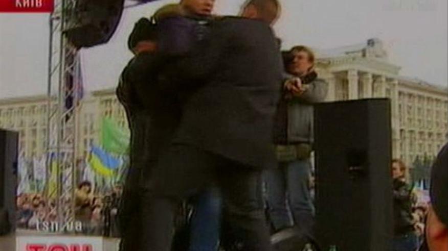 Националист назвал Ляшко пид***сом и столкнул со сцены Майдана