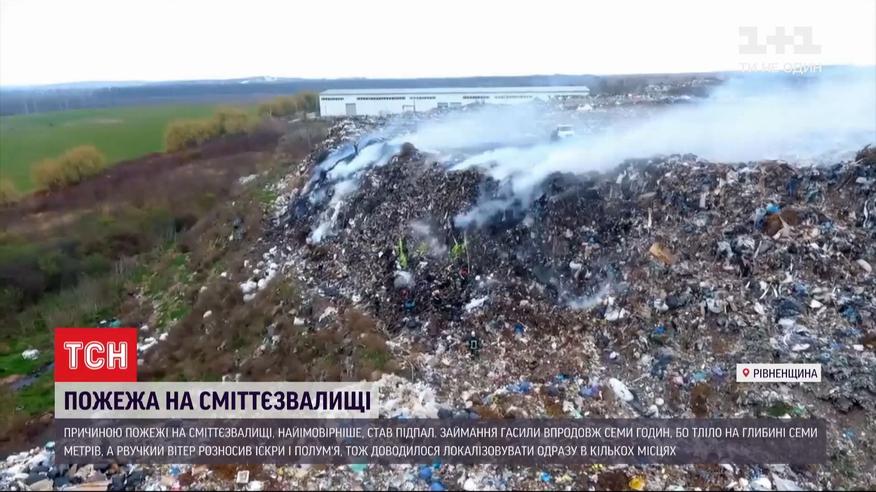 Наиболее вероятной причиной пожара на мусорном полигоне неподалеку Ровно считают поджог