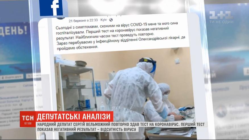 Народный депутат из группы "Довіра" в Верховной Раде Сергей Вельможный заявил, что повторно сдал тест. Он рассказал, что вместе с сыном находится в инфекционном отделении Александровской больницы Киева. Первый тест на болезнь показал отрицательный результат, но температура не спадает, поэтому народный депутат решил провериться еще раз. Больше о коронавирусе в Украине