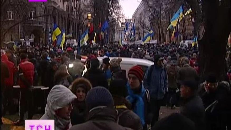 Все время под стенами парламента звучали призывы и лозунги евромайдана. Два часа назад народные избранники разошлись.