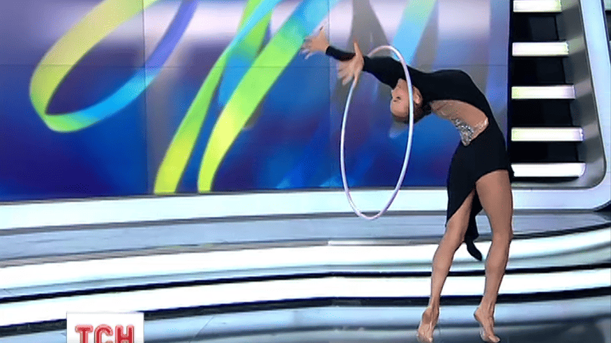 Золото во всех финалах - обруч, мяч, булавы, лента - завоевала наша красавица Анна Ризатдинова. 22 года. Чемпионка мира по художественной гимнастике. Два года назад на чемпионате мира в Киеве произошел скандал - тогда украинской спортсменке включили российский гимн. Это была Аня.