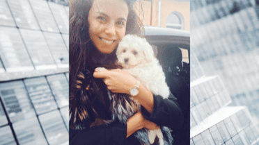 Настя Каменских тренирует материнский инстинкт на собаке Мими