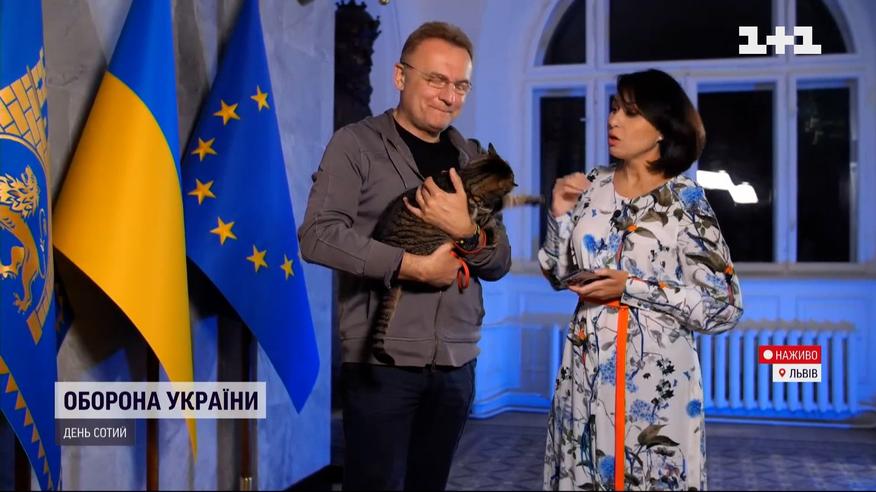Наталью Мосейчук в прямом эфире хотел "цапануть" кот, которого принес мэр Андрей Садовый