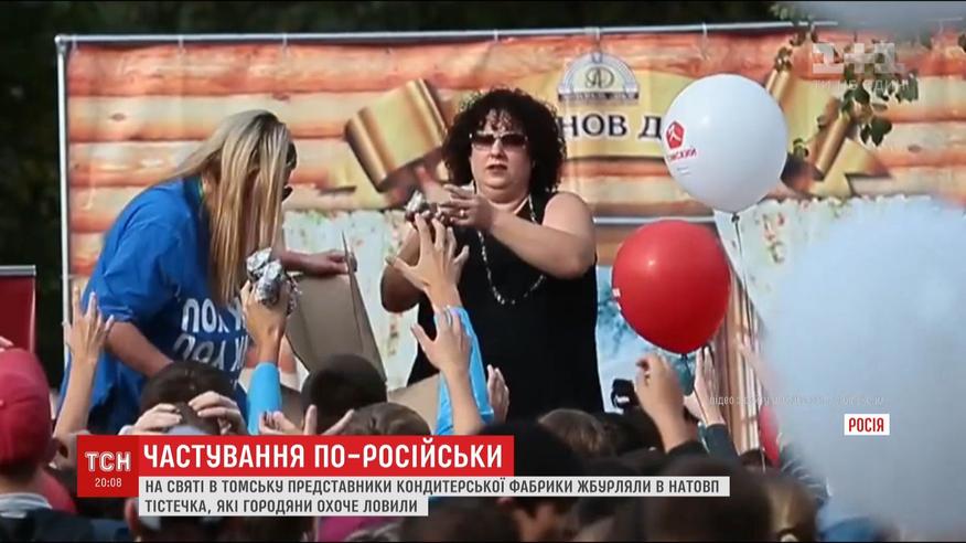 Не только блины на лопате: в Томске в толпу бросили 150 килограмм пирожных