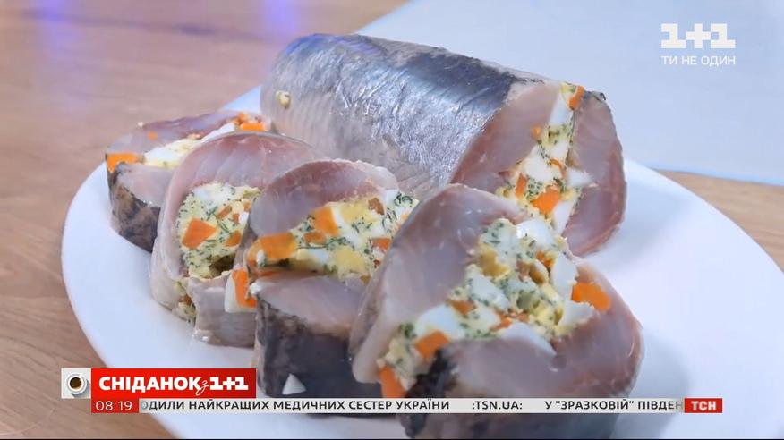 Неделя новогодних закусок: готовим рулеты из сельди в прямом эфире "Сніданку з 1+1"