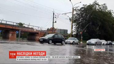 В результате мощных ливней и сильных порывов ветра 80 населенных пунктов остались без электричества. Более половины из них - в Житомирской области. По данным спасателей, ветер повалил более трех десятков деревьев. Четыре человека получили травмы и попали в больницы. Обильные ливни затопили в том числе и Закарпатье. Больше всего пострадали Ужгород и Раховский район.