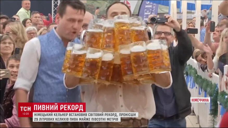 Сначала мужчина пытался поднять 31 бокал, но два из них разбились. Впрочем, оставшихся хватило, чтобы установить рекорд. Стеклянные бокалы с напитком весили почти 70 килограммов. Впрочем, официант умудрился пронести их на стол почти не разлив.