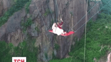 Необычная свадебная церемония в Китае: молодожены поженились на высоте 200 метров