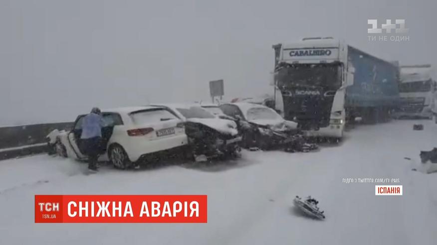 Неожиданная метель в Испании спровоцировала массовое ДТП