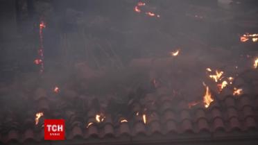 Огонь охватил лес в воскресенье в поселке недалеко от Афин, повредил сосновый лес и здания, из-за чего люди были вынуждены покинуть свои дома. Десятки спасателей пытались остановить пожар с помощью пожарных автомобилей и вертолетов.