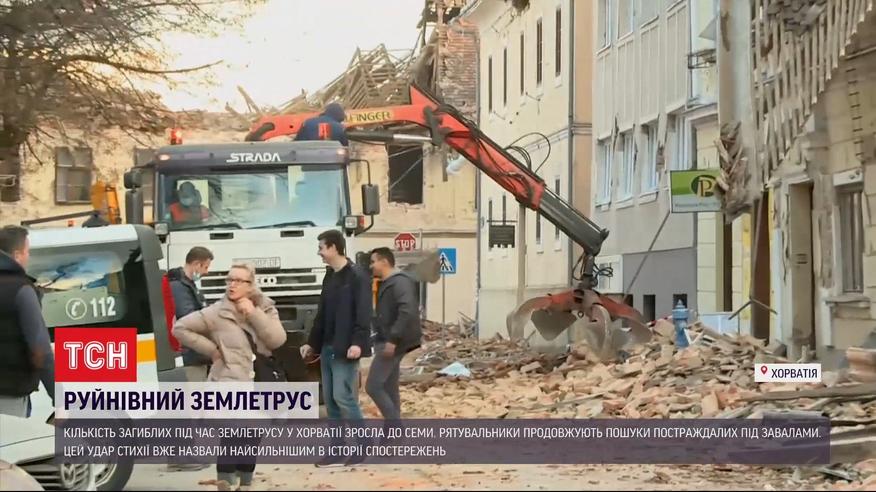 Разрушительное землетрясение в Хорватии. Число погибших при подземных толчках возросло до 7 человек. Под завалами продолжают искать раненых. Украинцев среди пострадавших нет, сообщили в Министерстве иностранных дел. Здание украинского посольства также было разрушено, однако сотрудники не травмировались.