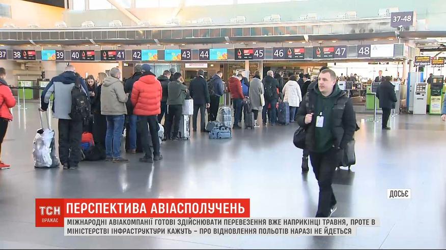 Авиакомпании начали продажe билетов. Одновременно несколько международных авиаперевозчиков открыли бронирование билетов на конец мая и начало июня. Первыми готовы доставить в различные страны Европы - Wizz Аиr, Lufthansa и МАУ. Чешские авиалинии, в частности, предлагают спецперелет из Киева и Одессы в Прагу. Из аэропорта "Киев" готовы вылететь уже 23 мая три авиакомпании. Именно в этот день истекает действие постановления Кабмина о запрете перелетов.