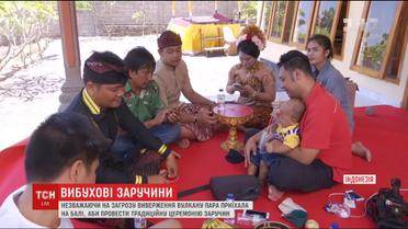 Несмотря на угрозы извержения вулкана, молодая пара приехала на Бали, чтобы заручиться